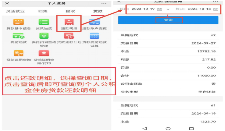 8.个人住房公积金贷款还款明细查询:进入楚雄州住房公积金管理中心微信公众号→个人中心→个人业务→贷款→还款明细