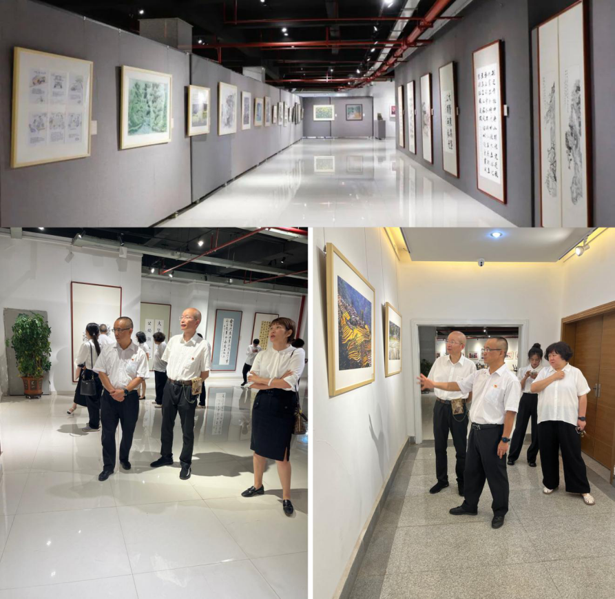 在楚雄技师学院美术馆讲解员的引导下,党组书记、主任杨柏繁带领全体干部职工认真聆听了每幅作品创作背景和意义的讲解,参展作品主题鲜明、内容丰富、形式多样,寓教于艺术之中,活动现场丹青吐彩、翰墨飘香。参展作品以“清廉楚雄 你我共建”为主题,将廉洁文化内涵与艺术高度融合,突出了政治性、时代性、专业性、艺术性和民族特色,深刻领悟作品中蕴含的廉政思想内涵,切身体会新时代廉洁文化建设新成效、新举措、新变化,在潜移默化中接受廉洁文化的熏陶和教育。