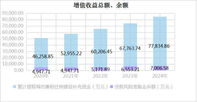 2024年末,贷款风险准备金余额7006.58万元。累计提取城市廉租住房(保障性安居工程)建设补充资金78134.86万元。