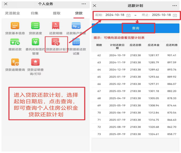 9.个人住房公积金贷款还款计划查询:进入楚雄州住房公积金管理中心微信公众号→个人中心→个人业务→贷款→贷款还款计划