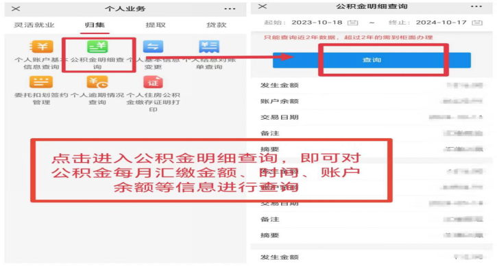 3.公积金明细查询:进入楚雄州住房公积金管理中心微信公众号→个人中心→个人业务→归集→公积金明细查询